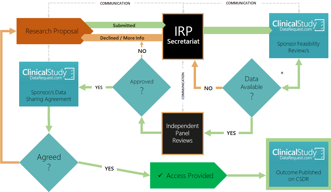 The panel chair informs the IRP Secretariat and relevant study Sponsor or Sponsors of the decision and provides any conditions of access and the rationale why a Research Proposal is not approved. For declined IRP Research Proposals, the rationale is communicated to the researcher. There is no appeal process. For approvals, the Data Sharing Agreement will thereafter be sent by the Sponsor(s).
